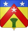 D'or, à la gerbe de blé de sinople, au comble d'azur chargé de deux étoiles en fasce d'argent; chevron de gueules du tiers de l'écu, chargé du signe des chevaliers légionnaires, brochant sur le tout.[9]