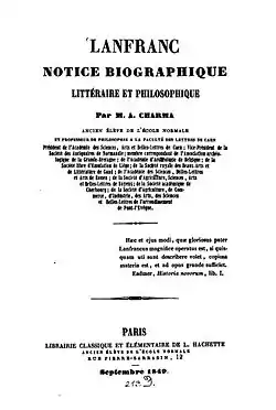 - Lanfranc, notice biographique, littéraire et philosophique, Hachette, Paris, . — Lire ce texte sur HathiTrust Digital Library, Google Livres.