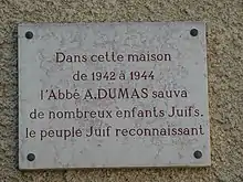 Une plaque a été apposée en 1992 sur le mur de l’ancien presbytère, pour lui rendre hommage ainsi qu’à la population solidaire. Son nom est également inscrit dans le jardin des Justes à Yad Vashem.