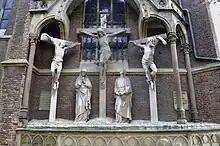 - Nouveau Calvaire et figures de saints au portail de l'église Saint-Lambert de Düsseldorf (de).