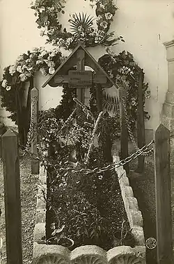 Le peintre autrichien Otmar Burtscher, qui était un officier du Kaiserjäger sur cette partie du front, a écrit : "Le général suivait, depuis les positions italiennes proches, les phases de la bataille. Pas même le tonnerre des balles ne pouvait le faire bouger de son siège. Soudain, sans dire un mot, il a lâché ses jumelles et est tombé à terre ; une balle l'avait frappé en plein front"[10].