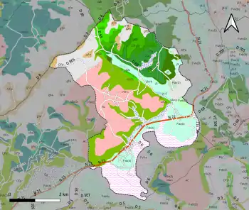 La superficie cadastrale de la commune publiée par l'Insee, qui sert de référence dans toutes les statistiques, est de 20,23 km2[5],[10],[Note 2]. La superficie géographique, issue de la BD Topo, composante du Référentiel à grande échelle produit par l'IGN, est quant à elle de 21,05 km2[3].
