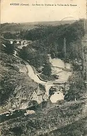 Le pont sur la Creuse au-dessus des tourbillons du Nettu et y créer le chemin d'accès. Cette prouesse de génie civil a laissé une légende et un nom à ce pont, le pont du diable, puisqu'on raconte que c'est le diable lui-même qui l'a achevé. Il aurait demandé en échange l'âme de la première personne qui y passerait selon les uns ou celle du maire s'il achevait l'ouvrage avant l'aube selon les autres. Bien sûr, les habitants malins l'ont berné, soit en envoyant un chat le traverser en premier soit en réveillant un coq pour annoncer le jour bien avant que le soleil ne perce à l'horizon !