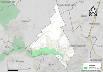 Par ailleurs la commune fait partie de l'aire d'attraction d'Arras dont elle est une commune de la couronne[Note 3]. Cette aire, qui regroupe 163 communes, est catégorisée dans les aires de 50 000 à moins de 200 000 habitants[18],[19].