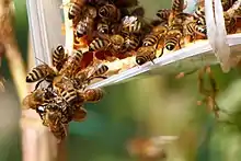 Le suivi plus ou moins continu du poids d'une ruche[4] peut être utilisé pour identifier l'apparition d'un flux de nectar pendant la saison de butinage, pour suivre la consommation de nourriture hors périodes de butinage, pour détecter un essaimage de la colonie par une diminution nette et brutale du poids de la ruche, ou encore pour estimer du nombre de butineuses. Il existe deux façons de mesurer le poids de la colonie :