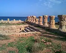 La lente subsidence qui touche le littoral cyrénéen a entrainé l'immersion partielle de la cité, dont la partie portuaire se trouve au XXe siècle engloutie sous plusieurs mètres d'eau, jusqu'à 3,8 mètres de profondeur en certains points[1]. Les plongeurs ont observé sur les blocs de structure des quais des traces de colonies de balanes, petits crustacés qui vivent au niveau de l'alternance d'immersion et de submersion soit au niveau moyen des eaux. En plusieurs points du site, ces traces ont été observées à 3,8 mètres de profondeur, ce qui donne une idée du mouvement de subsidence depuis l'antiquité. Ce mouvement s'est visiblement ralenti au cours des deux derniers siècles, car le profil actuel du rivage est identique à quelques détails près à celui dessiné sur la carte de 1822 des frères Beechey[2].