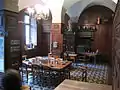 - Une salle de préparation (cuisine) où les apothicaires préparaient les potions, onguents, pilules etc avec alambics, chaudrons, grande cheminée, poêle en faïence...