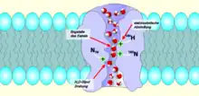 - Passage trans membranaire d'une molécule d'eau, via la protéine aquaporine, Animation produite par le NIH ("Center for Macromolecular Modeling and Bioinformatics")