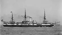 Son armement principal était constitué de quatre canons de 234 mm montés dans deux tourelles latérales décalées « en échelon » : la tourelle avant se trouvait à bâbord et la tourelle arrière à tribord. Son armement secondaire comprenait quatre canons de 140 mm, deux à l'avant et deux à l'arrière et treize canons de 1 livre, tous montés séparément. Le navire possédait également cinq tubes lance-torpilles de 360 mm, trois au-dessus de la ligne de flottaison et deux submergés. Il avait un blindage compound (en). Sa ceinture blindée était épaisse de 280 mm dans la partie centrale du navire, où étaient situés ses éléments les plus importants, notamment ses salles des machines et ses soutes à munitions. Aux extrémités, son épaisseur était réduite à 180 mm. Les tourelles principales étaient également protégées par un blindage de 180 mm, ainsi que son château[1],.