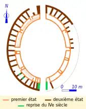 L'amphithéâtre semble avoir été agrandi au IIIe siècle avec la construction d'une cavea, les maçonneries incluant cette fois des lits de briques (opus mixtum)[3].