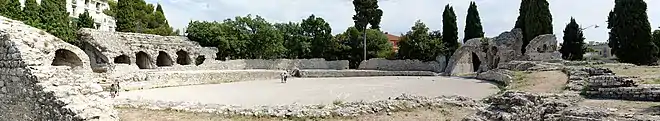 L'amphithéâtre de Cimiez, monument de spectacles de la ville antique de Cemenelum, l'un des plus petits recensés en Gaule (capacité estimée à 4 000 spectateurs), est construit en deux campagnes successives entre 70 et 80 de notre ère[1]. Il paraît abandonné au IVe siècle. Fouillé dans les années 1930-1940 puis en 2007, site ouvert au public, il continue d'accueillir des manifestations culturelles.