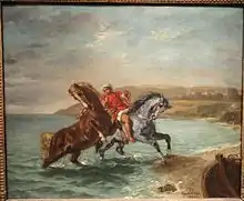 La conquête de l'Algérie par la France, entre autres, nourrit l'inspiration des artistes et des écrivains, qui baignant déjà dans leur propre culture équestre occidentale, s'intéressent au « cheval oriental »[4]. Il s'ensuit de nombreux voyages d'artistes-peintres au Maghreb et en Orient, notamment celui d'Eugène Delacroix au Maroc en 1832, d'Horace Vernet et Frédéric Goupil-Fesquet en Égypte en 1839[6], puis de Théodore Chassériau en Algérie en 1846, dont ils reviennent avec de nombreuses notes et des croquis détaillant le modèle des chevaux et le harnachement utilisé[4].
