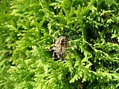 Elle reconstruit chaque soir une nouvelle toile orbiculaire, en formant une longue spirale pour rejoindre les rayons qu'elle aura préalablement tissée. Pour préserver ses ressources, elle ingurgitera la soie de la vieille toile.