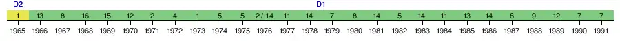 | 1973 | 1er | 39 | 30 | 18 | 7 | 5 | 52 | 26 | +26 | Vainqueur | |