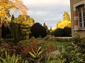 Après la grotte, d’anciens parterres accueillent des vivaces pour une petite partie, et pour le reste des arbres et arbustes, tels des érables du Japon (plusieurs cultivars d’Acer palmatum) et des conifères de petites dimensions, dont des ifs à petites feuilles (Taxus baccata' Adpressa').