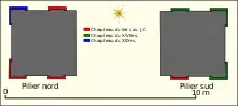 Le seul chapiteau construit au XIXe siècle est celui situé à la façade nord-est du pilier nord de la façade nord-est[B 3]. Il s'agit d'une copie très schématique des chapiteaux du Ier siècle av. J.-C., car les décors présentent de petites variantes et l'ensemble manque de relief[B 3].