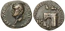 Antonio García y Bellido, archéologue et historien de l'art espagnol du XXe siècle et Noelia Vicent estiment que trois as frappés à Tarraco avec un arc au revers montrent celui de Berà[C 6]. En effet, sur ces pièces de monnaie réalisées sous le règne de Galba apparait un arc à travée unique, un attique couronné par une sculpture équestre ainsi que la présence de lésènes qui sont rares pour ce type de monument[C 6]. Sur les monnaies, deux prisonniers les mains attachés dans le dos sont escortés par un légionnaire romain avec les inscriptions « QVADRAG[ENS REMISSAE] S.C. » et « GALBA. IMP. CAESAR AVG. P. M. TR. P »[C 6]. Par ailleurs, Galba avant d'être empereur a été gouverneur de la province romaine d'Hispanie citérieure où se trouve Tarraco pendant huit années[C 6]. Ce dernier faisant preuve d'une dévotion importante à l'égard d'Auguste dont il est également le membre par adoption[C 7].