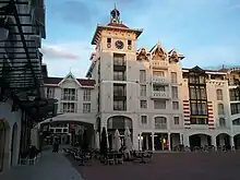 Puis Arcachon devient « la ville aux quatre saisons », selon la volonté des promoteurs de la station (notamment des journalistes locaux et du syndicat d'initiative créé le 19 avril 1905), qui souhaitent prolonger la vie touristique et économique toute l'année[26]. À la Ville d'Hiver[27] (ville haute au tracé curviligne avec ses allées sinueuses servant de brise-vent pour abriter des courants d'air les malades pulmonaires et favoriser leur convalescence)[28], viennent s'ajouter trois autres quartiers[29] : une « Ville d'Été » (ville basse au plan en damier qui se développe surtout à la fin du XIXe siècle mais dont le premier lotissement apparaît en 1842 où des maisons à louer sont édifiées ainsi que de nombreux chalets[Note 8] avec jardins d'agrément), puis une « Ville d'Automne »[31] et une « Ville de Printemps » au début du XXe siècle[32]. L'allée Faust, située près du parc mauresque, est une avenue exceptionnelle sur le plan architectural. Dans d'autres quartiers d'Arcachon, on peut admirer par exemple le château Deganne (devenu casino) ainsi que d'autres constructions du boulevard de la Plage ou du boulevard Deganne.