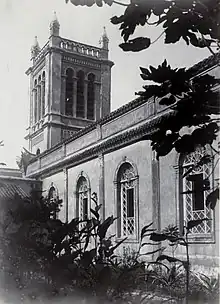 - 1856: le vicariat apostolique du Sétchouan oriental[2] (aujourd'hui Sichuan) est fondé le , recevant une partie du territoire du vicariat apostolique du Sétchouan (aujourd'hui: diocèse de Chengdu). Il est administré par les missions étrangères de Paris et compte à l'époque une dizaine de prêtres chinois et neuf prêtres français sous la direction pastorale de Mgr Desflèches (mort en 1887)[3]. Cette période connaît des vagues de persécutions, mais la France est confirmée dans son statut de puissance protectrice des missions en 1860 et les Chinois chrétiens obtiennent la reconnaissance de leurs droits civils par leur pays. La société des missions étrangères de Paris obtient en 1860 des mandarins chinois un terrain à Tchong-king, en dédommagement des missions précédentes dévastées. Cependant d'autres vagues anti-chrétiennes provoquent des troubles graves: le père Eyraud est emprisonné et les pères Mabileau et Rigaud sont assassinés à You-yang ; les pères Hué et Tay sont tués à Kien-kiang en 1873. La mission de Kiang-pe, avec son village chrétien est ravagé, le . Le père Coupat est nommé coadjuteur de Mgr Desflèches en 1882, et lui succède en 1888. La mission de Tchong-ping est pillée et ravagée en 1886 et les missionnaires se réfugient au tribunal chinois. En 1891, Mgr Chouvellon succède à Mgr Coupat, et marque son époque par la création de nouvelles stations de missions, l'édification d'églises. Lorsqu'il arrive la mission comprend 32 missionnaires, 33 prêtres chinois, deux séminaires avec 74 séminaristes, 151 écoles (pour un total de 1 963 élèves), 105 chapelles ou églises, le tout pour 31 359 baptisés.