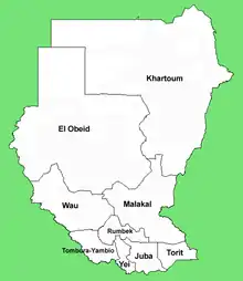 Diocèses du Soudan (1 et 2), et du Soudan du Sud (3 à 9). L'archidiocèse de Djouba est le no 8 | |