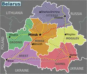 Les diocèses de Hrodna (ou Grodno), Pinsk, Vitebsk sont suffragants de l'archidiocèse de Minsk-Moguilev.