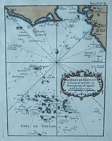 Carte des Glénan extraite du "Petit Atlas Maritime", Tome V N°61 (1764), de Jacques-Nicolas Bellin (1703-1772)