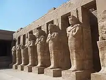 - le pilier osiriaque, dont une des faces est couverte par une statue du roi en Osiris ;