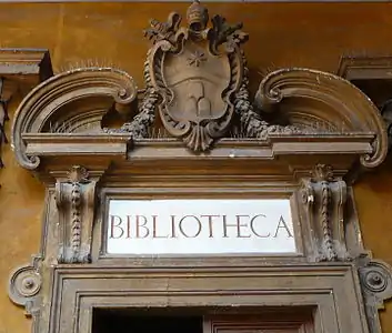 Inaugurée en 1714 en présence du pape Clément XI, elle se compose de deux grandes salles : la première est composée d'un hall d'entrée et d'un vestibule; la seconde, noyau d'origine de la bibliothèque, équipé de 16 étagères en bois. Parmi les collections de volumes conservées ici, il est important de rappeler la collection Lancisi, une collection de textes donnés au roi de France Louis XIV, par le grand-duc de Toscane Cosimo III et par le prince Fürstenberg. La bibliothèque conserve également 373 manuscrits précieux d'époques différentes allant du XIVe au XXe siècle, dont 2 codex en parchemin des écrits d'Avicenne, en latin, et le plus connu Liber Fraternitatis Sancti Spiritus. Derrière l'un des murs de la bibliothèque, une petite fenêtre ouvrant sur les fresques de la cour Sixtine a permis aux différents commandants qui se sont succédé dans la gestion de l'Institut, de contrôler le travail du personnel affecté à l'assistance aux malades. Enfin, au centre de la salle principale de la bibliothèque se trouvent deux magnifiques globes des années 1600.