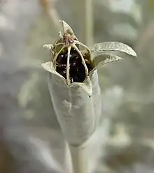 Le fruit est une capsule contenant de nombreuses graines noires et luisantes.