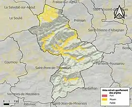 L’étude Scanning de Géodéris réalisée en 2008 a établi pour le département de l’Hérault une identification rapide des zones de risques miniers liés à l’instabilité des terrains[33]. Elle a été complétée en 2015 par une étude approfondie sur les anciennes exploitations minières du bassin houiller de Graissessac et du district polymétallique de Villecelle. La commune est ainsi concernée par le risque minier, principalement lié à l’évolution des cavités souterraines laissées à l’abandon et sans entretien après l’exploitation des mines[34].