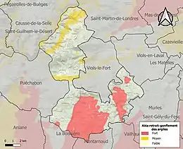 Le retrait-gonflement des sols argileux est susceptible d'engendrer des dommages importants aux bâtiments en cas d’alternance de périodes de sécheresse et de pluie. 36,9 % de la superficie communale est en aléa moyen ou fort (59,3 % au niveau départemental et 48,5 % au niveau national). Sur les 471 bâtiments dénombrés sur la commune en 2019, 456 sont en aléa moyen ou fort, soit 97 %, à comparer aux 85 % au niveau départemental et 54 % au niveau national. Une cartographie de l'exposition du territoire national au retrait gonflement des sols argileux est disponible sur le site du BRGM[25],[Carte 2].