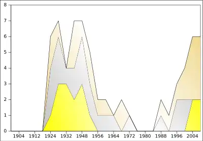 | 1932 | 3 | 1 | 0 | 4 | 11 |