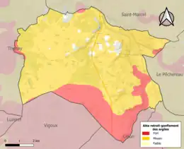 Le retrait-gonflement des sols argileux est susceptible d'engendrer des dommages importants aux bâtiments en cas d’alternance de périodes de sécheresse et de pluie. 96,7 % de la superficie communale est en aléa moyen ou fort (84,7 % au niveau départemental et 48,5 % au niveau national). Sur les 2 348 bâtiments dénombrés sur la commune en 2019, 2311 sont en aléa moyen ou fort, soit 98 %, à comparer aux 86 % au niveau départemental et 54 % au niveau national. Une cartographie de l'exposition du territoire national au retrait gonflement des sols argileux est disponible sur le site du BRGM[28],[29].