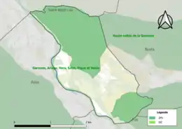 L’inventaire des zones naturelles d'intérêt écologique, faunistique et floristique (ZNIEFF) a pour objectif de réaliser une couverture des zones les plus intéressantes sur le plan écologique, essentiellement dans la perspective d’améliorer la connaissance du patrimoine naturel national et de fournir aux différents décideurs un outil d’aide à la prise en compte de l’environnement dans l’aménagement du territoire. Deux ZNIEFF de type 1[Note 3] sont recensées sur la commune[25] : « la Garonne de la frontière franco-espagnole jusqu'à Montréjeau » (469 ha), couvrant 38 communes dont 28 dans la Haute-Garonne et dix dans les Hautes-Pyrénées[26] et le « versant nord du massif du Crabère et massifs annexes de Saint-Béat à Saint-Lary » (8 787 ha), couvrant 8 communes dont deux dans l'Ariège et six dans la Haute-Garonne[27] et deux ZNIEFF de type 2[Note 4],[25] :