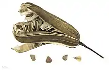 Les fruits sont des capsules allongées et cylindriques renfermant de nombreuses graines et elles s'ouvrent par six valves.