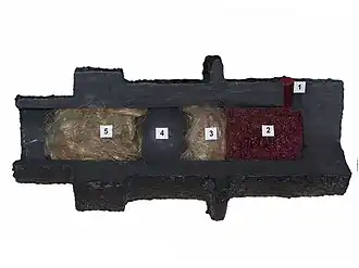 - Sur la plupart des canons de marine, la bourre à l'extrémité du canon ne sert pas seulement à obtenir une meilleure étanchéité autour du projectile, mais agit également comme un bouchon, afin d'arrêter les mouvements du projectile dus à l'oscillation du navire ;