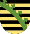 - Le petit blason de l'État libre de Saxe montre un écu bandé de neuf pièces noires et dorées, surmonté d'une couronne de rue verte en diagonale. Un grand blason de l'État libre de Saxe peut être déterminé par une loi spéciale.