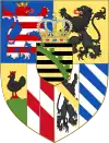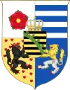 | Duché de Saxe-Iéna (1672-1690), duché de Saxe-Eisenach (1596-1638, 1640-1644 et 1662-1809), duché de Saxe-Cobourg-Eisenach (1572-1596 et 1633-1638), duché de Saxe-Weimar (1572-1809) et duché de Saxe-Wittemberg (1296-1356). | Duché de Saxe-Cobourg (1596-1633 et 1680-1735). | Duché de Saxe-Meiningen (1680-1918). |