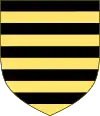 | Écu | Burelé d'or et de sable de dix pièces chargé d'un crancelin de sinople. |