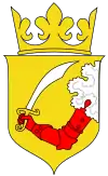 | Écu | Tranché : au premier quartier, d'or ; au deuxième, d'azur aux sept étoiles d'argent accolées en bande. |