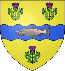 L'écu est composé d'une croix de saint André bleue sur un champ blanc, simple inversion du drapeau écossais. Il est également chargé des armoiries de l'Écosse, posées sur le tout.