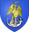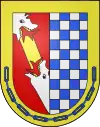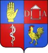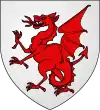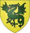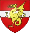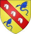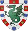 D'azur à la bande d'or engoulée de deux têtes de dragons du même, et accompagnée de deux fleurs de lys d'or, une en chef et une en pointe. |