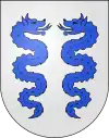 D'azur, à deux serpents ondoyants d'argent affrontés. |