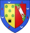 Tranché d'or et d'azur, l'or chargé de trois cœurs de gueules, l'azur d'une fleur de lis d'or ; et une bande d'argent engoulée de deux têtes de dragons de gueules, brochant sur la partition. |