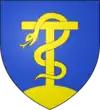 D'azur au serpent d'or, au chef bastillé d'azur au soleil levant d'or. |