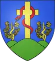 D'or à la croix de Lorraine de gueules accostée de deux serpents affrontés posés en chevron renversé du même. |