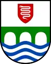 D'argent à la mer ondée d'azur au pont à trois arches de sinople surmonté en chef d'un écus de gueules au serpent d'argent . |