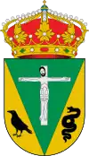 Parti, au I, d'azur à la bande componée d'or et de gueules, chargée de deux étoiles d'or sur le gueules et accompagnée en chef d'une étoile du même ; au II, de sable à l'épée haute en pal d'or, tortillée d'un serpent d'argent ; bordure cousue de gueules du tiers de l'écu, chargée du signe des chevaliers légionnaires, posé au deuxième point en chef. |