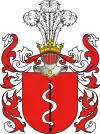 Cimier : Un lion saisissant dans sa patte avant dextre un caducée d'or. |