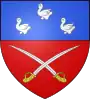 Famille de Cumont Coupé : au 1 d’azur à trois merlettes d’argent, posées 1 et 2 ; au 2 de gueules à deux sabres d’argent, garnis d’or, passés en sautoir, la pointe en haut.[37]